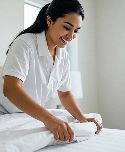 - Cambio de sábanas y cama ordenada.